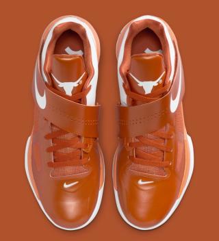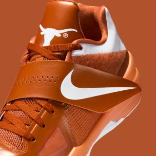 The low-cut design, aptly dressed in the iconic Longhorn orange, features standout elements like a mesh side panel, Zoom-cushioned midsole, and the signature angled midfoot strap that defines the KD 4 silhouette. A beloved colorway for fans of both Durant and the Texas Longhorns, the sneaker has since become a cherished grail for collectors.