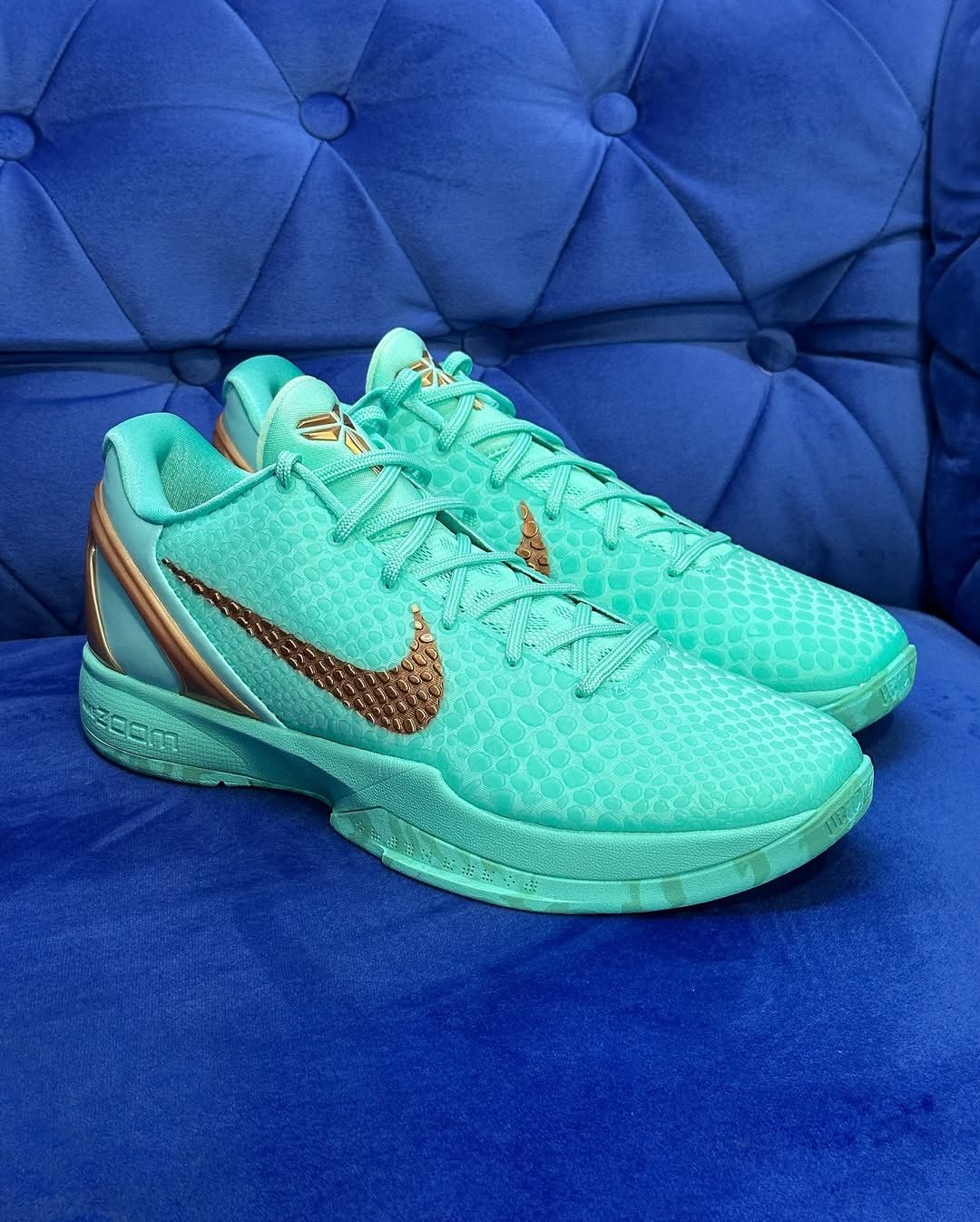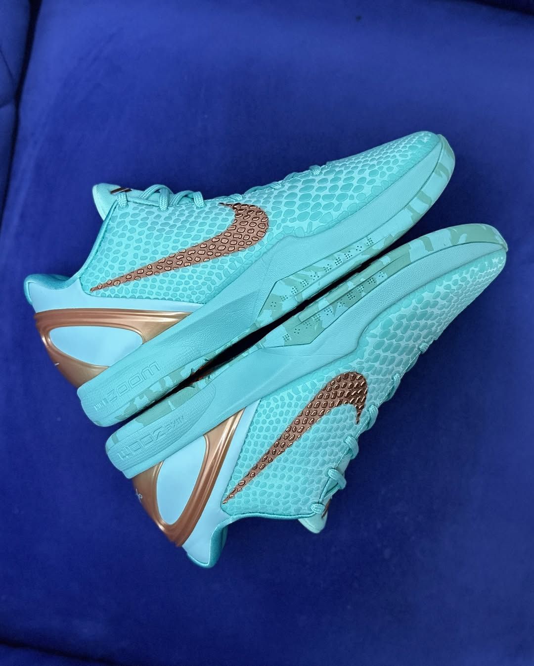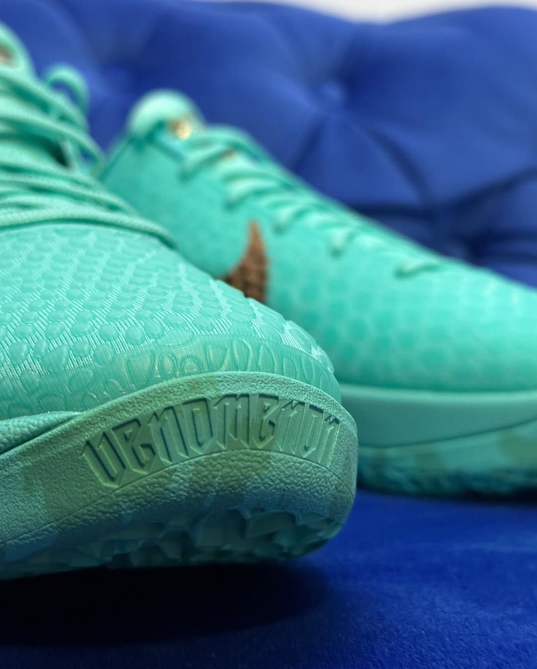 The upcoming colorway pulls inspiration from one of New York’s most recognizable symbols: the Statue of Liberty. Its minty green upper mimics the oxidized copper of the landmark, while a metallic bronze heel clip adds structure and ties the concept together. The copper-textured Swoosh and Kobe logos round out the detailing.