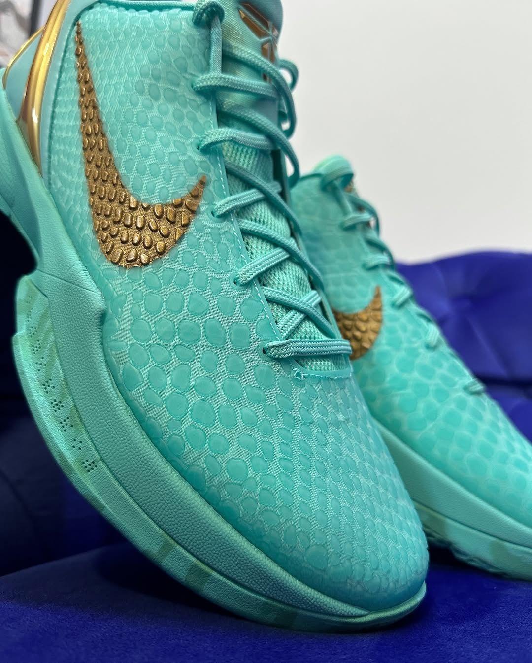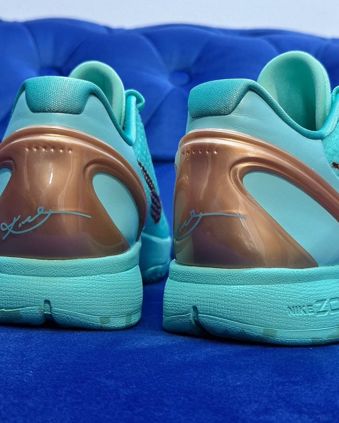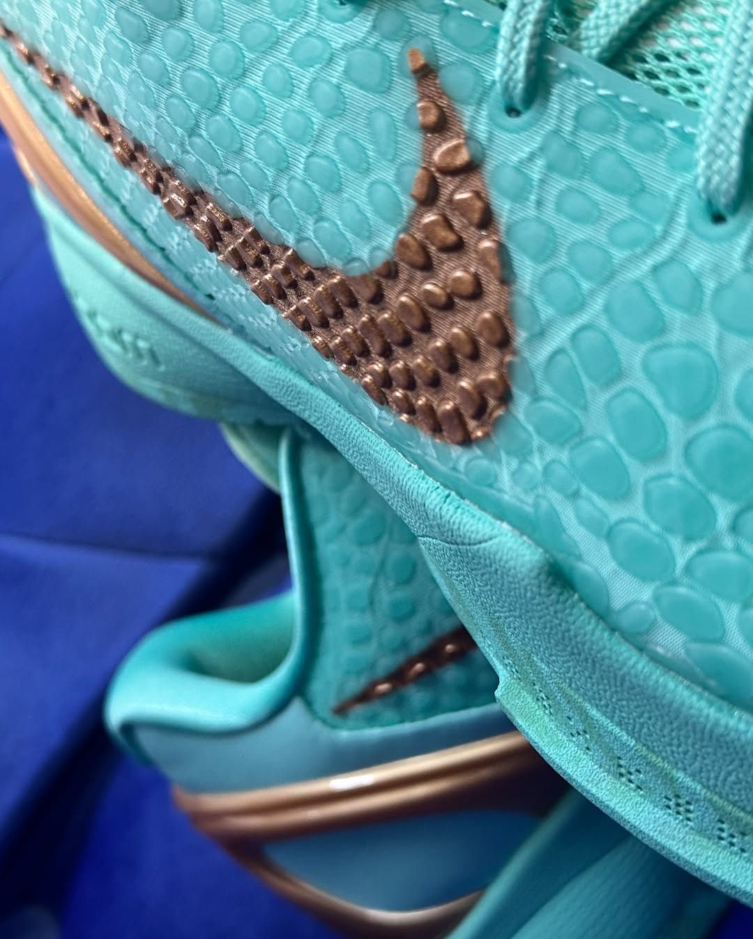 The upcoming colorway pulls inspiration from one of New York’s most recognizable symbols: the Statue of Liberty. Its minty green upper mimics the oxidized copper of the landmark, while a metallic bronze heel clip adds structure and ties the concept together. The copper-textured Swoosh and Kobe logos round out the detailing.