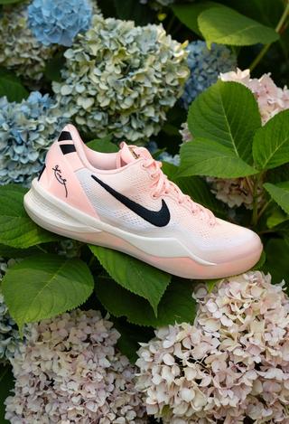 This edition of the Kobe 8 Protro dazzles with a soft crimson tint that captures attention. The shoe's design intricately fades from a vibrant pink at the collar to a pristine white towards the toe, enhanced by splatters of paint across the top portion of the sole, adding a dynamic, artistic touch. Echoing the luxurious aesthetics of earlier purple EYBL Kobe 8 PEs, this model features refined gold wax-like EYBL branding on the tongue, reminiscent of high-end liquor labels and the esteemed “Bin 23” Jordan series.
