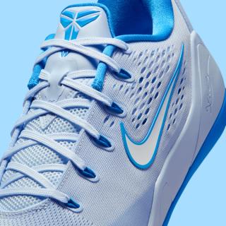The Kobe 9 Low EM strips the silhouette back to its most streamlined form, using engineered mesh instead of Flyknit for a lighter, more breathable build. Here, that mesh arrives in a soft grey base, contrasted by crisp Hydrogen Blue accents across the Swoosh, lining, outsole, and heel detailing. The result is subtle yet effective, emphasizing performance and wearability over loud storytelling.