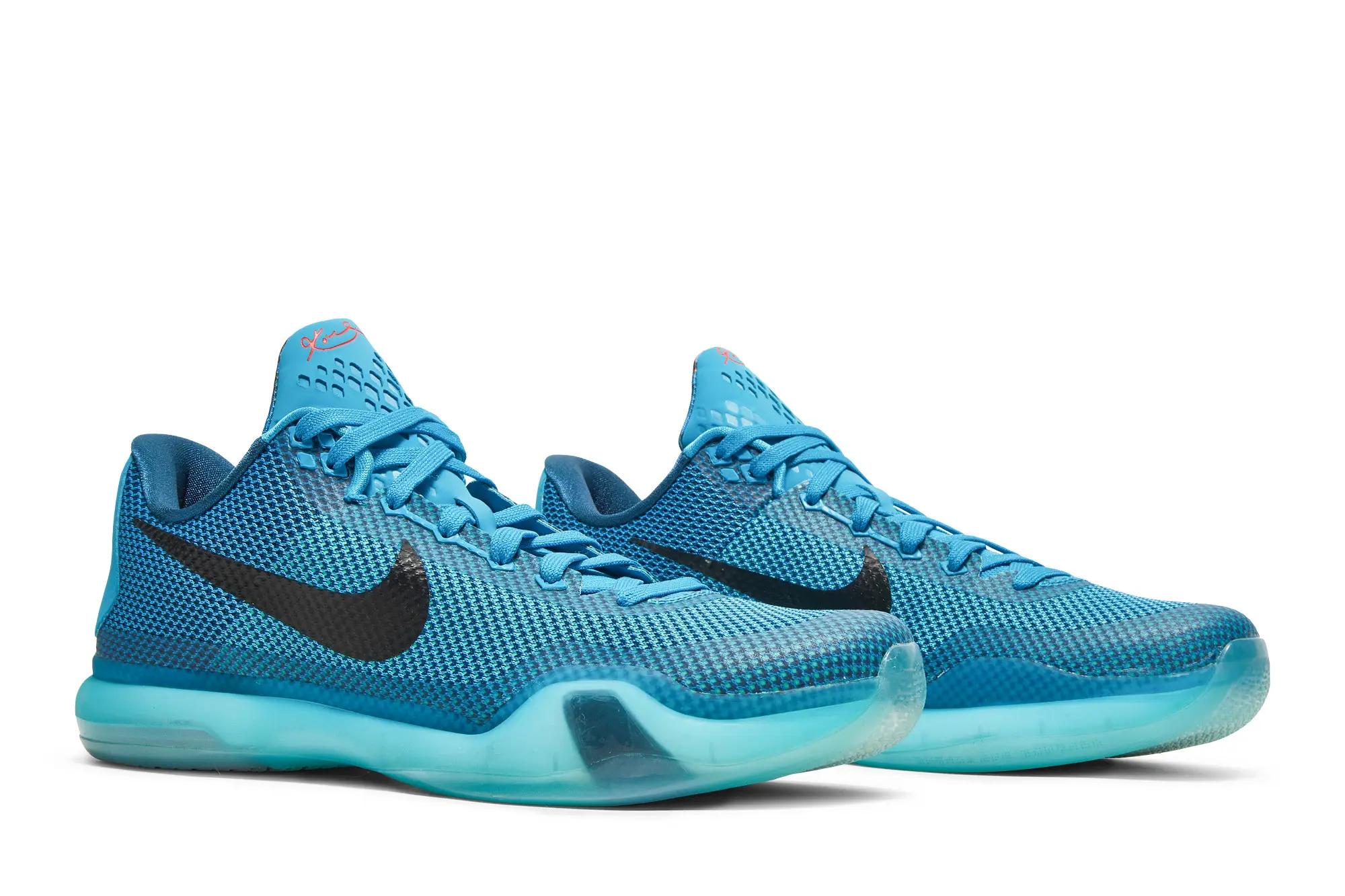 Originally introduced in 2015, the Nike Kobe X marked a shift toward lightweight performance and minimal construction within Kobe Bryant’s signature line. The “5AM Flight” colorway reflected Bryant’s early-morning training routine, pairing a bright blue engineered mesh upper with a translucent icy midsole and black Swoosh branding. Subtle red accents at the heel nod to the discipline and repetition that defined Kobe’s approach to preparation.