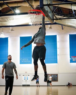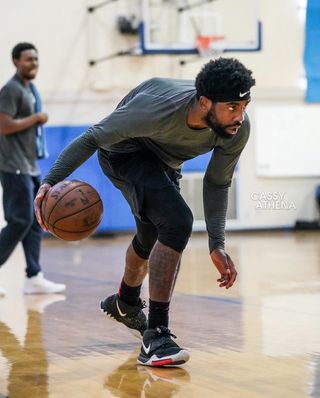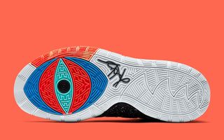After a long-winded run of leaks and first looks, today we get our first clear shots at the pair during a preseason workout in New York. — and yes, it does seem heavily inspired by the Nike YEEZY 2 — one of Kyrie’s favorite off-court sneakers. That vibe comes mainly from the collar, protruding heel piece, and lockdown strap, the latter returning to the Kyrie series for the first time since the Kyrie 2. Zoom Turbo looks to reinforce the pop at the forefoot, while vibrancy is retained underfoot, thanks to his all-seeing eye logo covering the tread’s pattern.