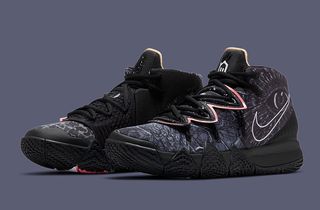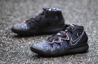 Having made only a brief appearance in our unveiling of the Nike Kyrie S2 Hybrid silhouette, this ominous black-based colorway caused some intrigue. And as it turns out, there was a lot to discover. Detailed looks at the release show that it’s now evident the release runs the recurrent Nike Hoops “What The” thematic, sharing print, character and pattern elements of famous Kyrie releases past. But it’s not just the colorway and its embellishments that are mix-and-match. The silhouette in itself is a What The of sorts, features design elements from Kyries kicks past — this year focusing on the Kyrie Four, Five, and Six. Staring at the base is the Nike Kyrie 4, in which the pair’s sole unit and forefoot are derived. The Kyrie 5’s famous Flytrap lace cover rides the vamp, while the rear-end is ripped straight from the Kyrie 6.