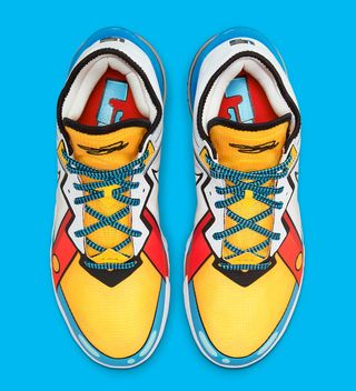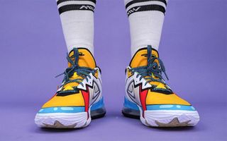Arriving in almost identical blocking to the King’s exclusive PE from 2008, the pair presents with yellow tongues and toes, red suspender straps at the forefoot, and all-white quarter panels. A sweeping blue ring runs around the guard and heel, and the pair is then clad with cartoonized effects from the forefoot to the Swoosh — it even arrives with identical laces and retro King Jame logos in the rear.
