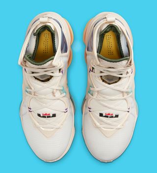 What we can confirm is that these are extremely clean, with the colorway a perfect fit for SoCal hooping. Here, clean cream uppers, midsoles, tongues, and stabilizers host a slew of subtle use, all of which ostensibly honor the King’s past. From MPLS powder blue and yellow outsoles — and its deep royal heel clips — to hidden flywire of Lakers-esque purple, to St. Vincent’s-St. Mary’s green liners and South Beach pinks at the forefoot crowns. Regardless of the official story, the pair is a tasteful statement sneaker for the hardwood, and will likely fit out several hoopers at your local rec league soon.