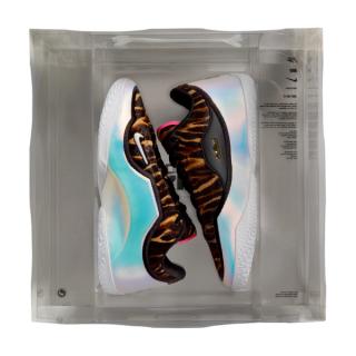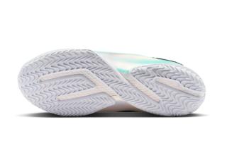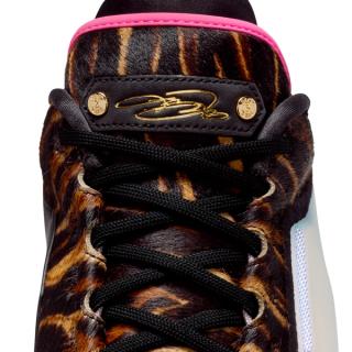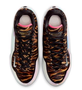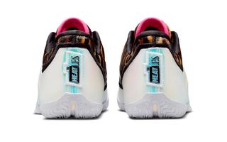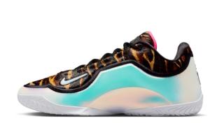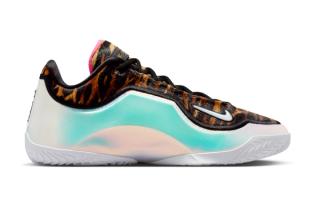 The LeBron 23 continues the low-cut direction introduced earlier in the model’s rollout, applying a blend of performance innovation and lifestyle-friendly styling. For this release, Nike layers the upper in a striking combination of iridescent gradients and faux-animal textures. A teal-to-pearl fade wraps the lateral panels, contrasted against a tiger-striped treatment through the collar and eyestay—an unmistakable nod to the loud, confident energy Miami embodied during the Big Three era.