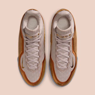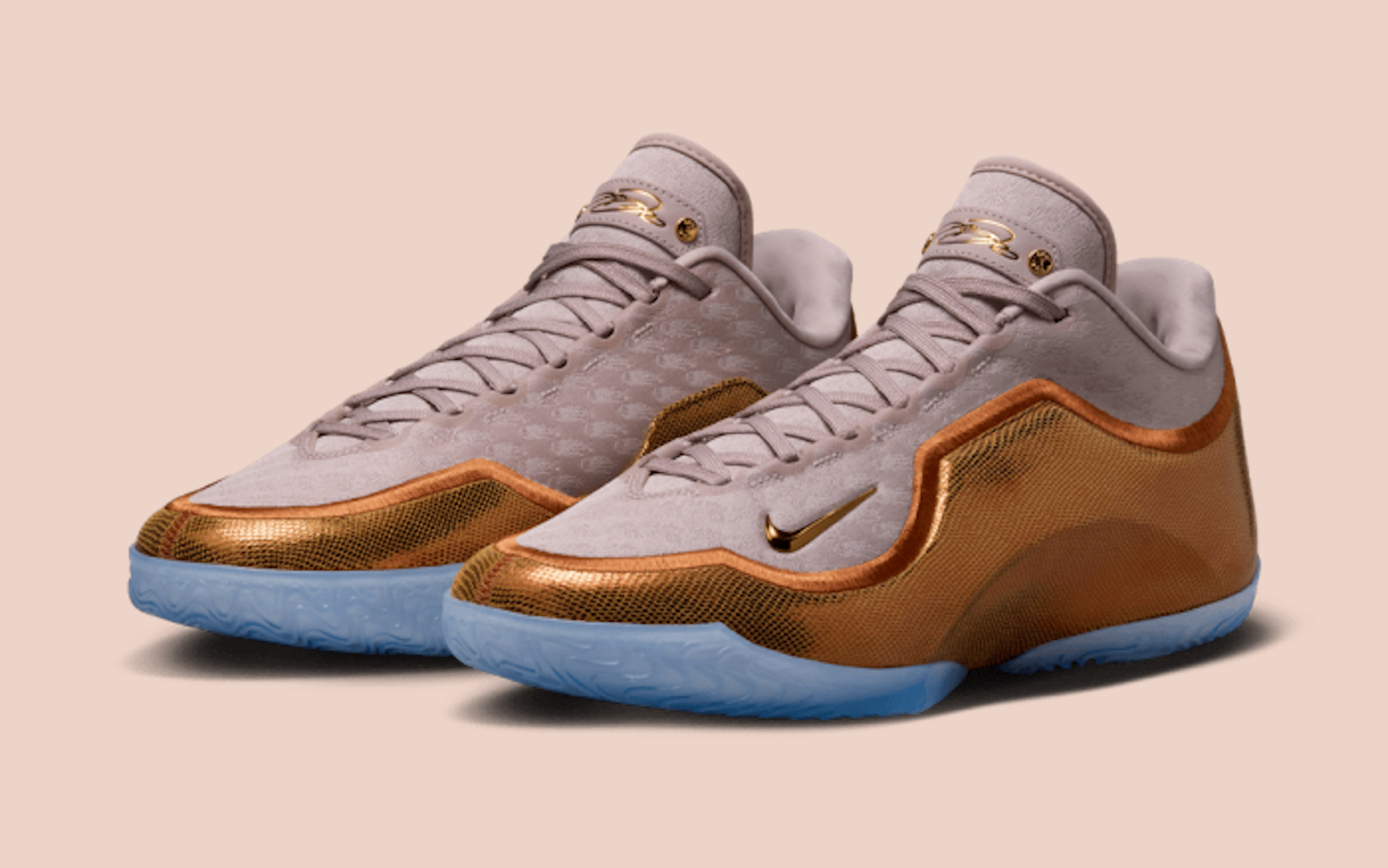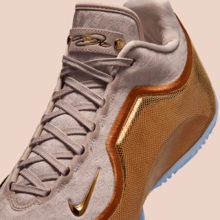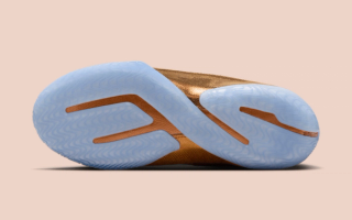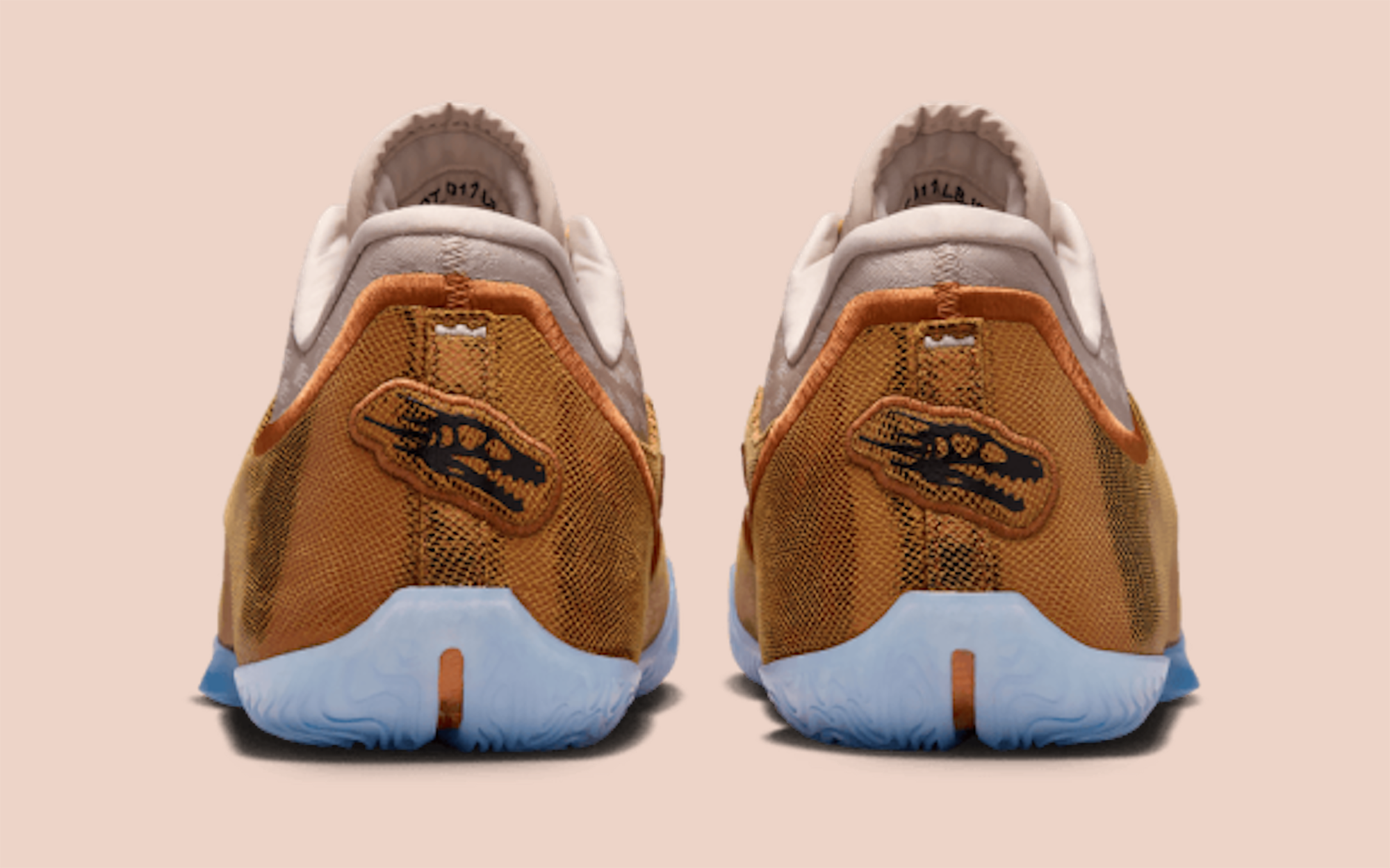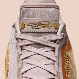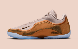 The shoe features an elegant "Silt Red/Black/Metallic Copper" color scheme that animates the crown-shaped lower-half in a shimmering finish. The pair's most-definitive detail, however, is the dinosaur fossil-inspired emblem on the spine—a nod to James burying the Raptors time and time again.