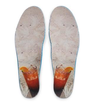 First spotted on the King back in July 2021, the ultra-limited pair paid homage to the humble Arnold Palmer, a simple non-alcoholic iced tea and lemonade beverage often requested (and some say invented) by the late golf legend. The drink has become a staple of coastal communities across the globe, and a symbol of the easy life — and there’s plenty of that going on in South Florida. Because of that, the pair boasts a tropical palm tree print atop a yellow, teal, and orange Hyperfuse upper. A direct nod to Palmer is found on the insoles, where his drink of choice is depicted, before being completed by and sweeping teal green midsole, and orange 360-Max Air unit, and a semi-translucent yellow outsole.