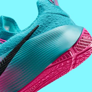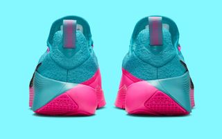The shoe features a vibrant mix of turquoise and hot pink, echoing the iconic South Beach color palette that has long been tied to LeBron’s time in Miami. Palm tree branding makes an appearance on the tongue pull tab, reinforcing the coastal inspiration behind the design. A black Swoosh cuts across the upper for contrast, while gradient midsoles blend teal and pink together seamlessly. The outsole continues the vibrant scheme in hot pink, rounding out the Florida-inspired look.