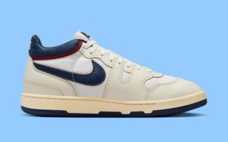 Drawing inspiration from the mid-1980s Nike Challenge Court tennis shoe — a classic yet to be re-released in its original glory — this forthcoming iteration of the Mac Attack embraces a harmonious blend of heritage and homage. This rendition mirrors its muse's distinctive navy Swoosh and navy/team red collar, paired with a deliberately yellowed upper to evoke a sense of time-honored patina. This look has become commonplace but remains effective in today's vintage-enthused sneaker landscape.