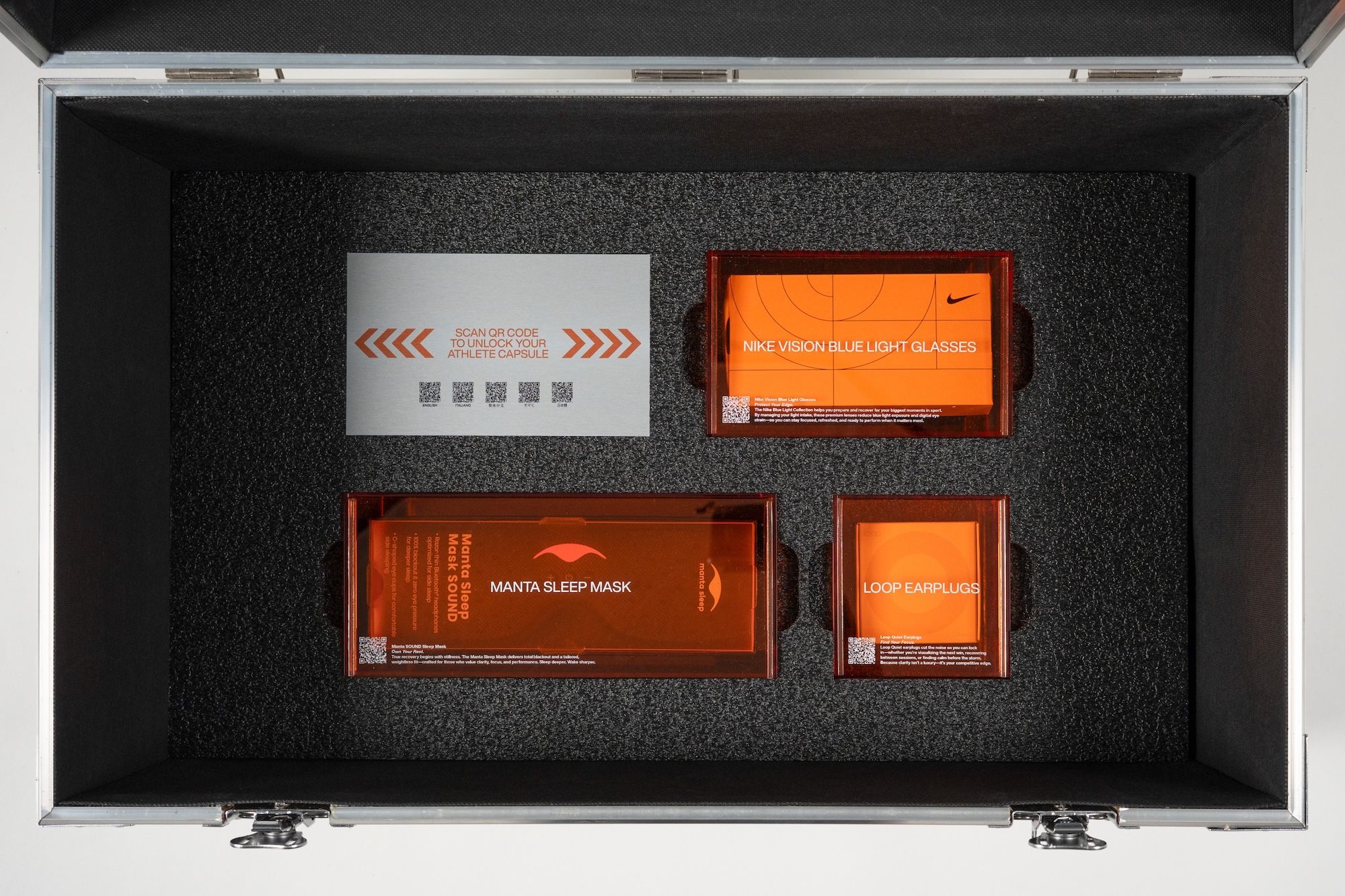 Other items included in the pre-Games capsule are a complimentary Timeshifter Concierge experience, Loop Quiet earplugs, Manta SOUND sleep mask, and Nike Vision Blue Light Glasses. Every component has been carefully considered to help those representing their nations stay focused, refreshed, and ready to perform against world-renowned competition.