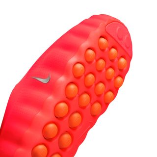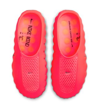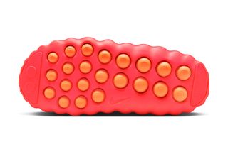 This “Solar Red” edition takes the experimental look of the Nike Mind 001 to new heights. Its sculpted foam body appears in a striking red hue, contrasted by reflective silver Swooshes across the upper and midsole. A perforated vamp enhances breathability, while the footbed and underside feature orange recovery pods that cushion and stimulate pressure points during wear. The scalloped midsole design — a key visual element of the model — continues the organic, almost biological inspiration seen throughout Nike’s Mind Science Department experiments.