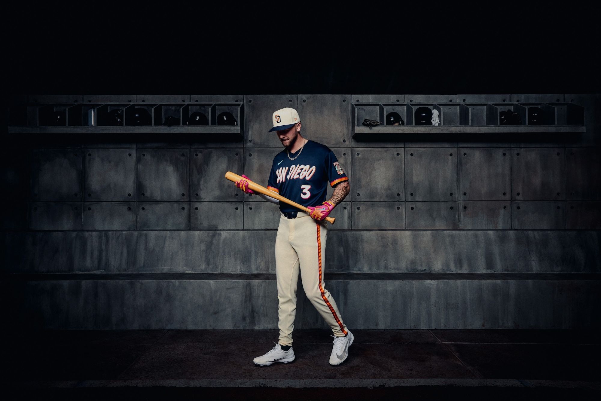 The San Diego Padres 2026 City Connect uniform will be accompanied by a bone cap, obsidian bill, and floral pattern on the interior, completed by a two-tone "SD" logo.