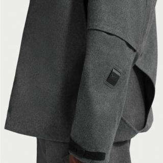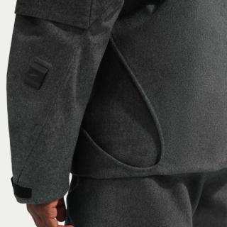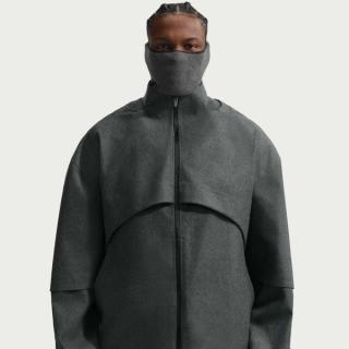 Alongside the GORE-TEX outerwear, the NOCTA CODE Men’s Flow Jacket introduces a contrasting approach through material innovation. This loose-fitting, water-repellent jacket is crafted from a premium Japanese wool blend, offering a softer, more refined alternative within the lineup. It comes equipped with a detachable engineered-knit neck warmer, allowing for adaptable wear depending on conditions. Lenticular sleeve trims add visual depth, while an internal numbered label emphasizes the limited, considered nature of the Anomaly Cycle.