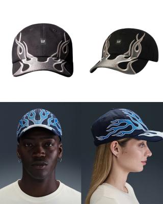 Each hat features a bold, slightly curved brim and unique flame embroidery across the front panel and brim, giving it distinct Y2K energy. But the real buzz isn’t just about the design—it’s about what it resembles.