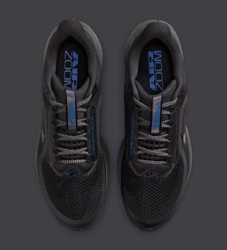 Game Royal accents bring contrast and energy to the design. Blue hits appear across branding details and the Air Zoom unit, adding a sharp visual break against the blacked-out base. A glossy black Swoosh blends into the sidewalls, keeping the overall presentation clean and focused rather than loud.