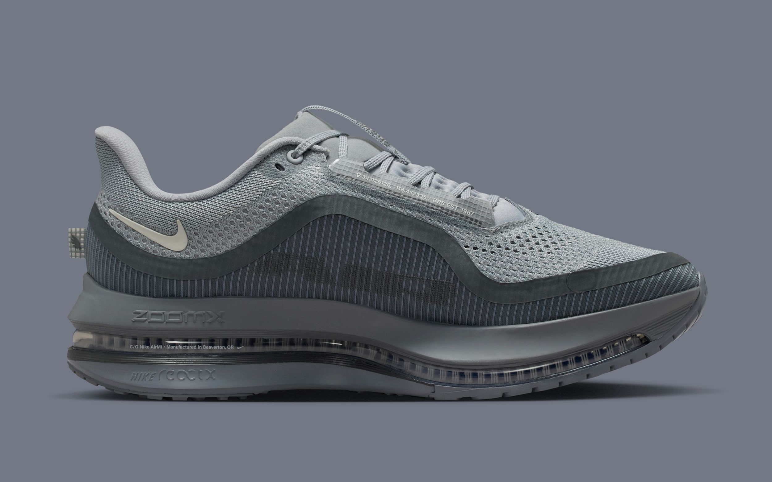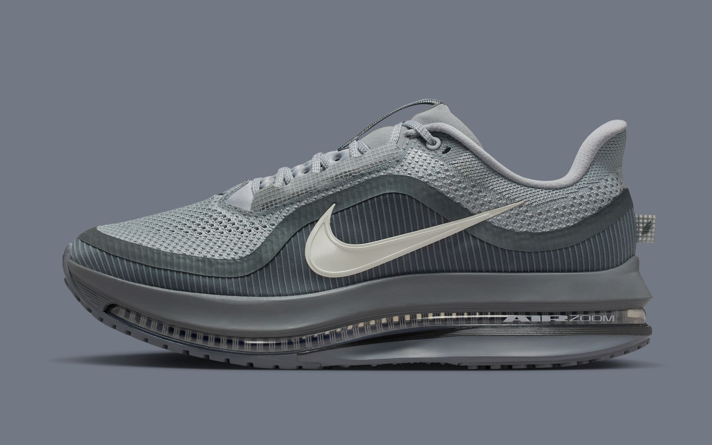 The pair keeps things understated with a full greyscale treatment across the engineered mesh upper, ribbed midfoot panels, and TPU reinforcements. Its layered construction brings depth without leaning into loud accents, relying instead on subtle shifts between light and dark grey to highlight the model's aerodynamic build. A soft Sail-tinted Swoosh adds slight contrast while maintaining the muted identity of the shoe.