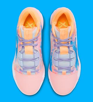 A light and bright colorway for the summer season, this new effort employs pastel hues of blue, punk, purple, and sherbert set agaisnt striking white sole units. The upper, likely a drawing inspired by his daughters Olivia an Natasha, sports a crayon-like scribble on the profile panels that encompass the pair’s overarching palette. Swooshes on the lateral and medial heels follow this hand-drawn aestethic, before solid hues at the toe, tongue, and collar counter the doodles to complete the design.