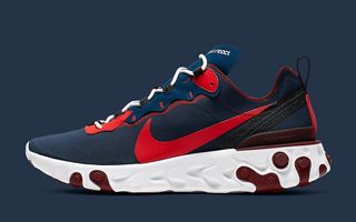 Yesterday’s launch of the Nike React Presto was a little nostalgic. the all-new take on the turn of the century sneaker may be loaded with modern-day React tech, but it harkened back to its roots, releasing in two OG colorways: Brutal Honey and Rabid Panda. The latter, in blue, red and black, was a fan favorite in both its OG and React releases, so it made sense for Nike to share the colorway on one of its other popular React models, the Element 55.