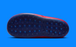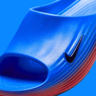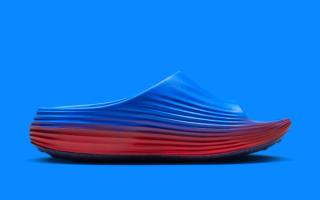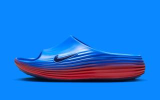 Nike continues to push its ReactX Rejuven8 Slide as more than just a recovery option, positioning the sculpted slip-on as a statement piece for warm-weather wear. The latest upcoming colorway leans into bold contrast, pairing a vivid blue upper with a warm-toned gradient along the sole that shifts into an red-orange finish near the base.
