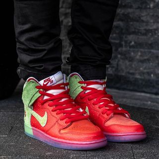 “Known for its sweet smell of fresh strawberries and an expanding sensation that can make even the most seasoned consumer cough, Strawberry Cough is a potent strain with mysterious genetic origins. The skunky, berry flavors will capture your senses while the cerebral, uplifting effects provide an aura of euphoria that is sure to leave a smile on your face. Strawberry Cough is a great solution in times of elevated stress.” — Damn, no wonder it’s a popular option for smokers the world over — so much so that this year the fan-favorite marijuana strain will be celebrated on this year’s annual 4/20 Nike SB Dunk.