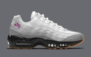 At a glance, the “Cactus Flower” colorway holds onto the ’95s unmistakable gradient paneling in shades of grey, but it’s quickly apparent that this is no standard retro. Bright purple pops line the lace loops and Air units, while SB branding appears on the insoles and heel. There’s even a woodgrain-like rubber outsole to emphasize its offbeat style shift. One of the more subtle changes is the SB logos housed inside the visible air bubbles, which is an unusual touch that speaks to how special this release is.