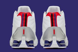 Serving as a follow-up to Vince Carter’s OG “Metallic Silver” Nike Shox BB4 retro — a sneaker from his Days as a Toronto Raptor — comes a new offering that’s more aligned with the franchise’s OG colors. This all-new Nike Shox BB4 “Raptors” rocks out in a mix of smooth and tumbled white leather, the former hitting the top half and toe of the upper, the latter along the fan-stitched mid-panel. Metallic silver hits the tongues, liner, and heel caps, the latter encasing a Court Purple Shox system, while vivid red heel adds some extra pop in the back. The tri-colored ribbon at the heel and tongue link back to the franchise’s original colors, while glazed on white claw marks on the profile panel align more with the team’s modern-day claw logo