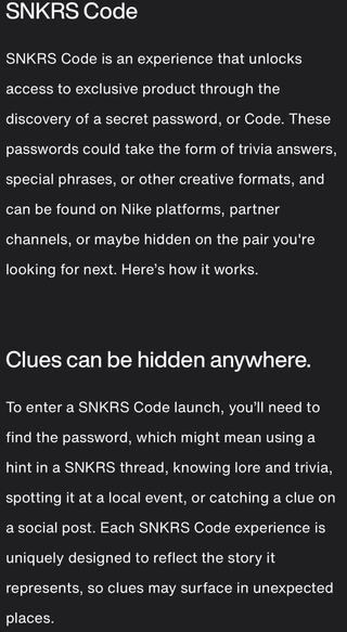 With SNKRS Code, Nike is betting on interactivity—bringing a puzzle element to the release process and giving its most engaged audience a way to unlock pairs through knowledge, attentiveness, and a little bit of the chase.