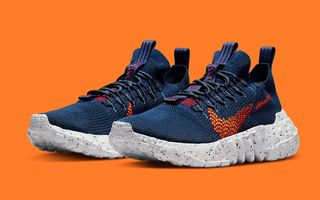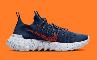For Nike’s sustainable Space Hippie linage, one would expect that there may often be delays due to the supply of suitable recycled materials. Since the introduction of the line, we’ve seen sporadic drops of the first four models, but the 01 has by far been the most consistent. It seemed that there was nothing slowing down for the Nike Space Hippie 01 in 2020 — until it halted in August of that year. It finally reappeared mid-way through 2021 and has since stepped up its schedule. Now you can tack on a new colorway for 2022, with this awesome navy and orange arrangement set to hit shelves in the new year.