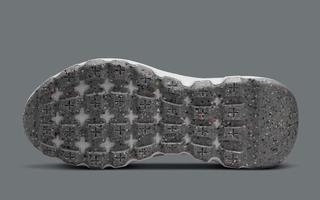 Typically, the SH04’s woven upper is peppered with colored flecks. Here, however, it arrives in a solid white leaving the color pops to the rainbow-riddled Crater Foam/Grind Rubber sole unit beneath — the latter encasing the entirety of the outsole instead of the normal toe and heel caps. Branding arrives mostly in white, save the lateral Swoosh in a light grey, whilst warmth is added in subtly with sails at the heel clip and laces to complete the design.