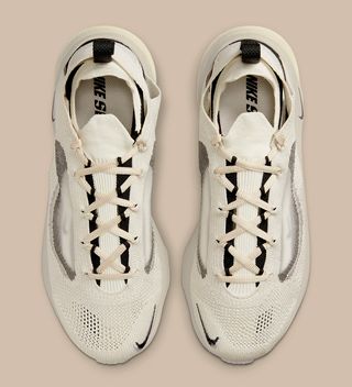 Though not much is currently known about the Spark, it does appear to layer on three levels of tech. In between the two midsole foams (perhaps EVA and React) sits a midfoot shank that is visible from lateral, medial, and underside scooping. The upper is equally unique in its construction, appearing similar to many of Nike’s D/MS/X offerings. Neutral-colored knits create an outer layer, that’s then blended into the see-through window at the side. It wraps around the heel like a pull, indicating that there may well be an inner bootie to this new design, too.