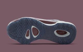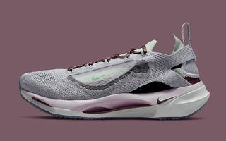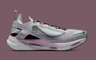 Though not much is currently known about the Spark, it does appear to layer on three levels of tech. In between the two midsole foams (perhaps EVA and React) sits a midfoot shank that is visible from lateral, medial, and underside scooping. The upper is equally unique in its construction, appearing similar to many of Nike’s D/MS/X offerings. Purple-colored knits create an outer layer, that’s then blended into the see-through window at the side showing tints of green. It wraps around the heel like a pull, indicating that there may well be an inner bootie to this new design, too.