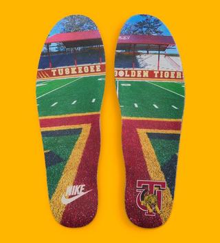 The "Tuskegee University" Terminator High is adorned in a poignant mix of white, black, crimson, and gold, each thoughtfully chosen to echo the institution's venerable heritage. Trademark Nike branding takes a step back as the tongue labels are graced with “TU” lettering and a Golden Tiger logo, immersing wearers in Tuskegee's emblematic ethos. A subtle but meaningful touch, the embroidery of "Tuskegee Institute" on the spine, pays homage to the university’s early days. Additional detailing, like the “Ball” and “Parlay” text on the laces, “1881” debossed on the lateral forefoot, and a snapshot of Abbott Stadium on the insoles, add layers of narrative, embodying Tuskegee’s rich narrative.