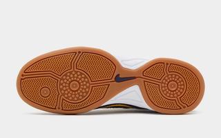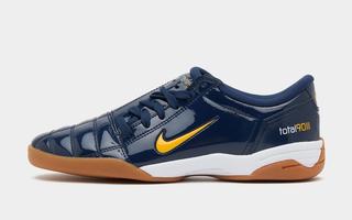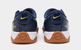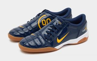 While the University of Michigan may not be recognized for its soccer pedigree, its iconic colors perfectly lend themselves to the court-ready design. Dressed in glossy navy patent leather, the sneaker is accented by striking golden Swooshes, tongue logos, and Total 90 branding. A gum rubber outsole adds that signature futsal vibe, and contrast white midsoles help break up the deep tone of the upper. The classic quilted toe box, debossed medial number branding, and era-correct logo hits all return intact, giving the pair a faithful retro treatment.
