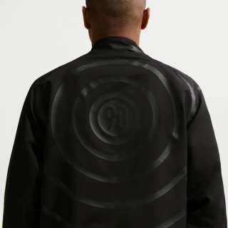 The zip-up, hood-less woven piece sees "Lightning"-colored Swoosh and "90" logos on the right and left chest, respectively. Strips along the sleeves follow suit, contrasting the pitch-"Black" seen throughout the bulk of the jacket. Lastly, red "totalninety laser" text lands on the right sleeve, further referencing Nike Football heritage on a fashionable piece for lifestyle use.