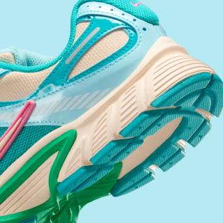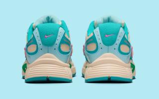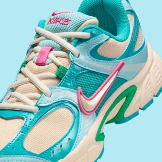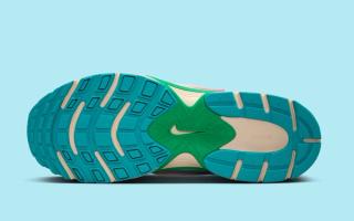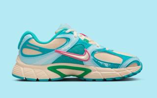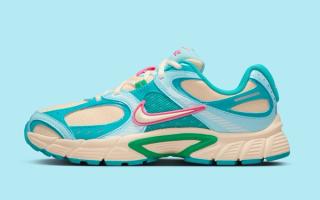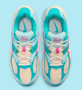 Officially clad in a "Guava Ice/Pinksicle/Glacier Ice/Pale Ivory" color scheme, the most recent V5 RNR to appear deviates from the earth tones typically associated with Nike Sportswear's fall and winter offerings. Hits of blue animate synthetic leather panels throughout the upper, which dons a beige-like mesh base. A similar off white tone covers the bulk of the midsole underfoot, although vibrant shades of green and blue interrupt via mid-foot shanks and rubber tread. "Pinksicle" accents fall in line with other impending products, delivering flair that can't be ignored despite colder days and longer nights.