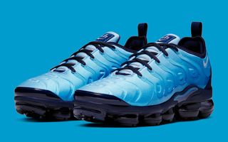 With the months cooling down, so is the wild array of VaporMax Plusoptions hitting the market. The vivid, vibrant colors will begin to take a back seat in favor of chilled, cool vibes, like this all-new ice-cold “Current Blue” VaporMax Plus. Painting a midnight navy sole unit, liners, laces, heel overlays and pulls with a bright ice blue-to-white gradient upper, the pair couldn’t be more suitable for the chilly back end of the year. If you’re feeling cool, pairs are available right now directly from Nike.com for $190.