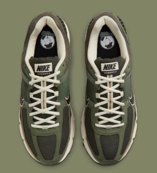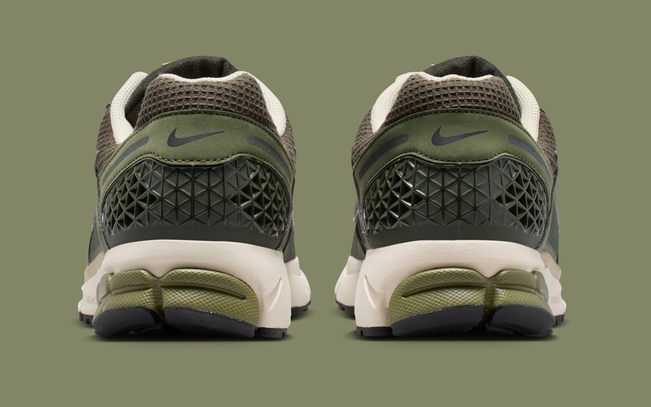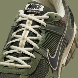 At its core, the Nike Vomero 5 “Army Olive” sticks to the formula that’s made the silhouette so popular: a layered mesh base, synthetic overlays, and supportive midfoot panels that balance visual depth with everyday comfort. Here, those elements are dressed in a muted mix of Army Olive, Black, and Khaki, creating a grounded palette that feels versatile without drifting into generic territory. The olive mesh uppers set the tone, while darker green and black accents reinforce the shoe’s utilitarian feel. Subtle hits of off-white along the laces, lining, and midsole help break things up and keep the look from feeling too heavy.