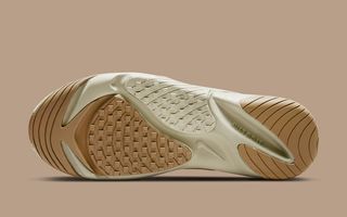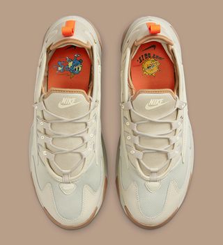 Dressed in an elegant mix of bone, beige, tan, and gum, the pair returns to a simple mesh and synthetic construct. Toes of bone mesh host the aforementioned synthetic overlays, all of which arrive in creamy beige hues. Tongues follow suit, with liners of tan linking up with the gum outsoles to sandwich the creamy middles. Laces and eyestays arrive in tonal tans, too, before a pop of orange at the heel pull and whimsical summer graphic insoles sit inside to complete the design.
