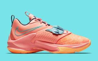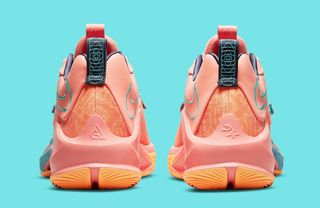 Delivering a design catered to Giannis’ signature Euro step, a very KD 7-like lockdown strap across the forefoot works in-tandem with Zoom Air units and a multi-directional outsole for responsiveness, energy absorption, and lateral traction. But it’s quite obviously not all about the Freak’s game, with colorways mimicking the two-time NBA MVP’s charismatic persona. Here, it’s vibrant orange all-over, with pops of muted, marbled teal blue at the aforementioned strap and midsole plating working with deep grey-blue liners to complete the design.