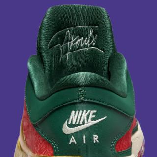 Christened “Keep It A Buck,” this highly-anticipated Fall 2023 release dons the signature Bucks forest green, harmoniously blended with red. Elevating the sneaker's aesthetic is the outsized Swoosh logo, which is adorned in a resplendent alchemic gold. Further detailing includes navy blue lace eyelets and pristine white Swoosh branding that grace the medial, heel, and tongue, rounding out the contrasting accents.