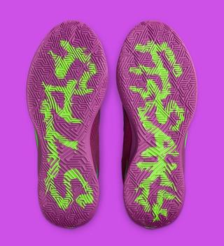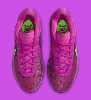 Dominated by the vibrant berry hue, the sneaker commands attention with a neon green Swoosh that ensures there’s no hiding on the court. The electric design mirrors Giannis’ explosive playing style, blending bold aesthetics with the performance needed for the big stage.