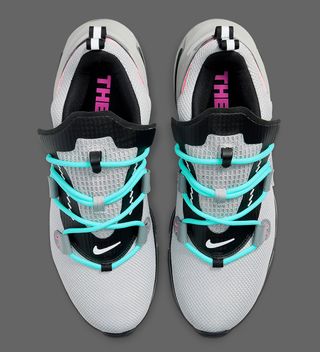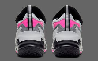 Taking on a tonal grey base, the pair migrates from light Platinum Tint weave to Wolf Grey on the tongue overlay and heavy-duty lacestay. Bold black is ushered in on the aforementioned sole unit, liners and heel pulls, with ACG-style pops of neon pinks finding their way onto almost every panel, and teal laces to boot.