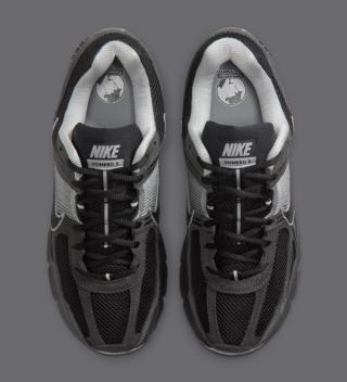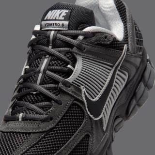 The upper blends breathable mesh with suede overlays and the Vomero 5’s trademark ribbed TPU cage, each section shifting between deep anthracite tones and lighter flat silver hits. The black Swoosh with contrast edging provides subtle depth, while the midsole follows the same muted spectrum without any added pops of color. It’s a restrained approach, but one that fits neatly within the current appetite for understated, easy-to-wear runners.