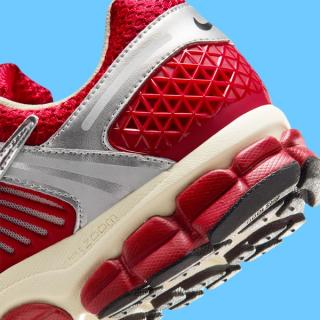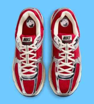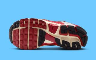 Sail touches across the lining, laces, and midsole help balance the palette, cooling down the high-saturation red and giving the shoe a slightly aged, lifestyle-ready finish. Underfoot, the Vomero 5’s dual-density Cushion foam and Zoom Air tooling remains intact, supported by a black and red rubber outsole that maintains grip and durability for daily wear.