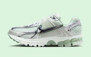 Nike’s Chrome Swoosh series of Vomero 5s has seen some striking, starkly-contrasted designs; but for it's next Nike has dived deep into the springtime tones, offering up the model in shades of soft Seafoam green.