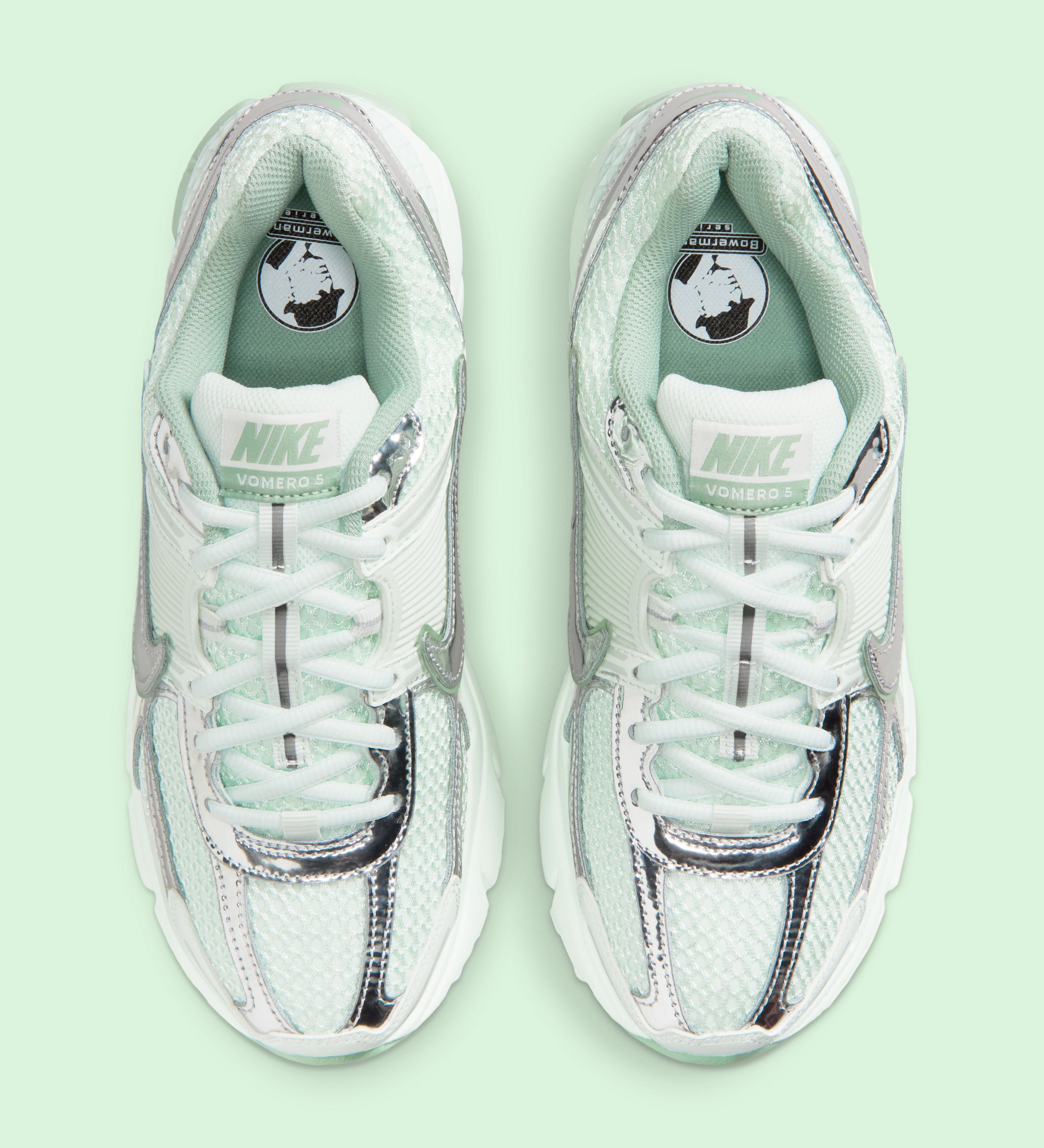 Expect the Nike Zoom Vomero 5 "Chrome Swoosh" (Seafoam) to release in Spring 2026 via Nike.com and select retailers.