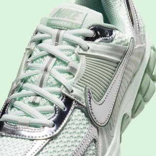 This new Nike Zoom Vomero 5 "Chrome Swoosh" (Seafoam) arrives in a refreshing seafoam green palette, covering its breathable mesh base and signature synthetic overlays. The model’s familiar cage structure and layered paneling remain intact, preserving the early-2010s running DNA that’s fueled its resurgence in recent years.