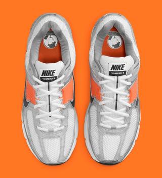 One such upcoming release is the silver/orange colorway of the Zoom Vomero 5, which has recently surfaced through Nike's official images. This latest sneaker version strikes a balance between classic and sporty aesthetics. It features silver overlays and a white mesh base that nod to its origins as a performance running shoe. Including orange color-blocking on the cage and heel cushioning adds a vibrant, athletic touch to the design.